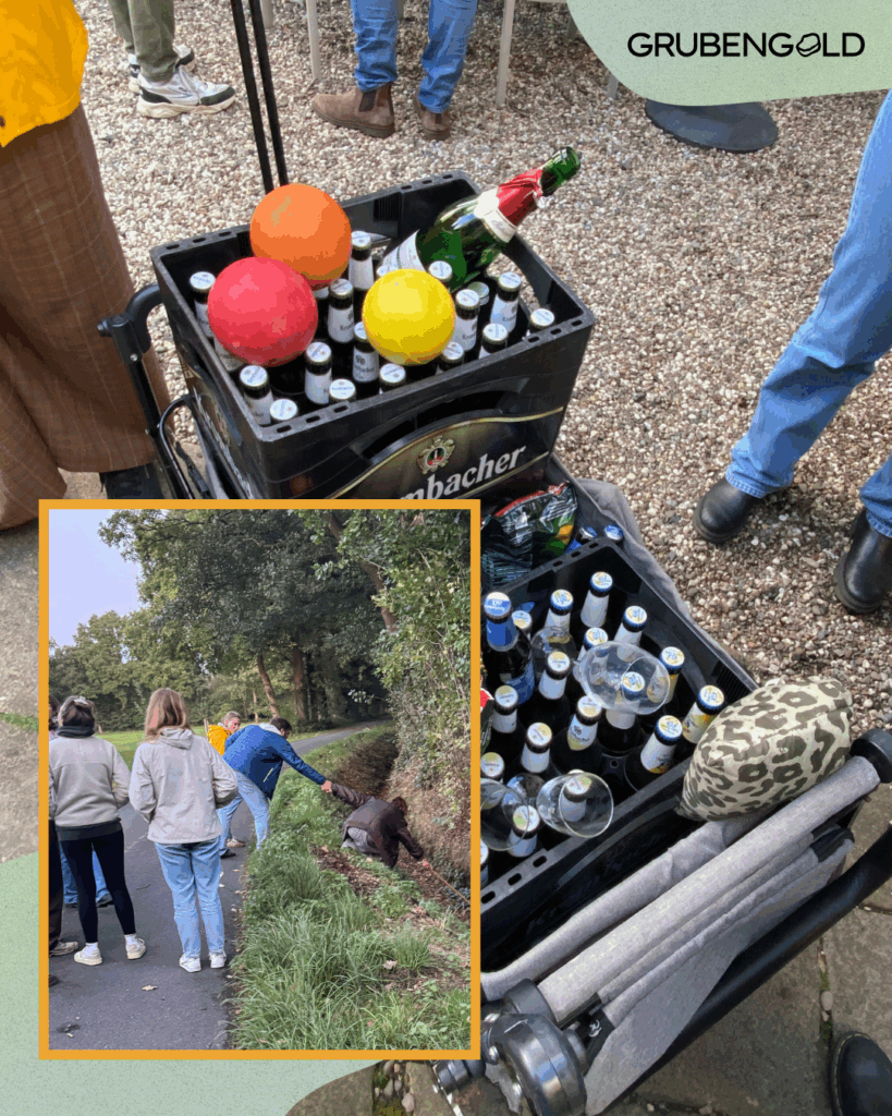Abends gab es dann die traditionelle, sehr kompetitive Runde Boßeln („Team Rot vs. Team Orange“) – inklusive kleiner, tierischer Zwischenpausen für’s ausgiebige Kuh-Streicheln. Lockerheit und Spaß sind bei Grubengold keine netten Add-ons, sondern integraler Bestandteil unseres Erfolgs.